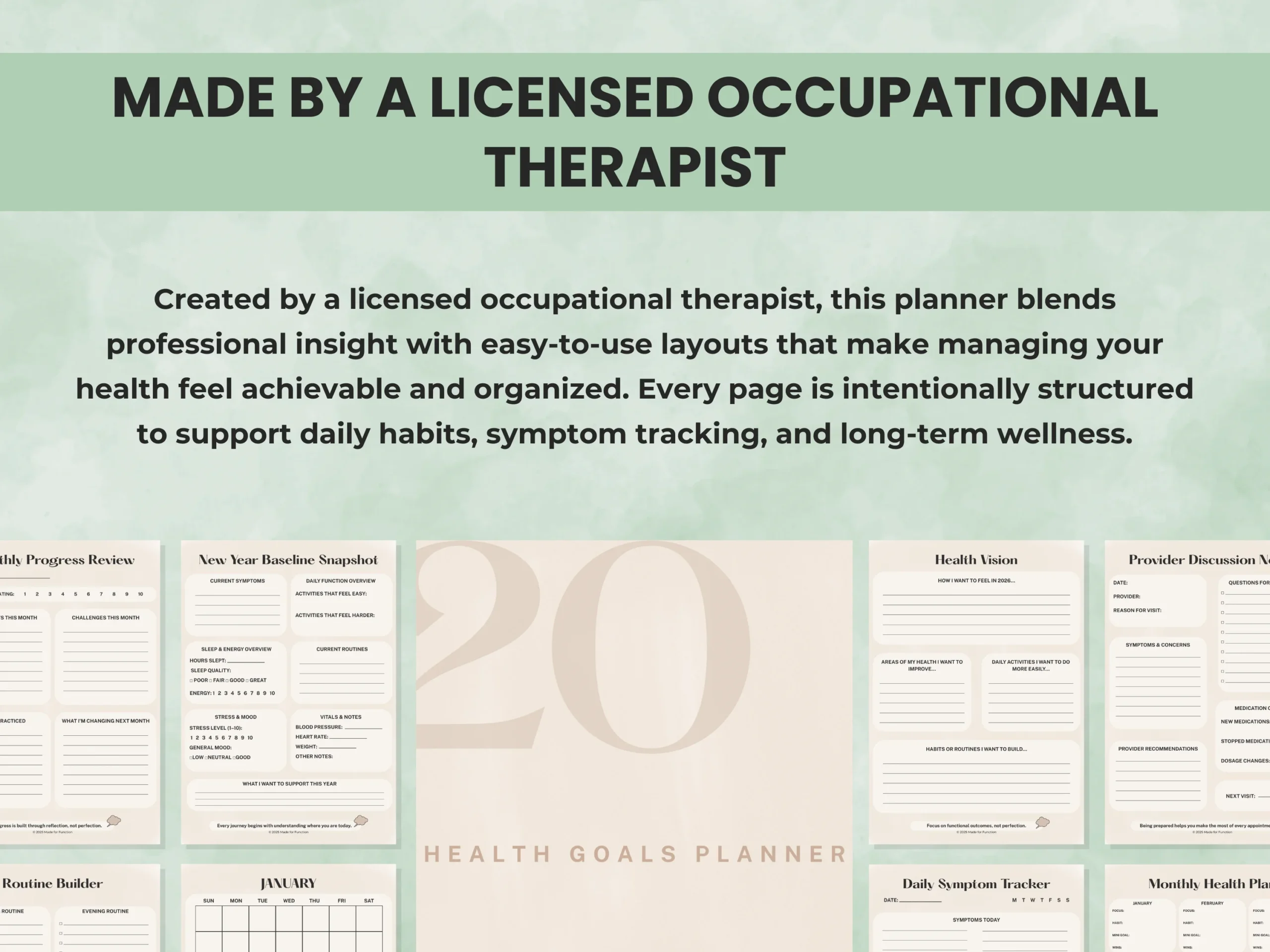 2026 Health Planner Printable, Health & Wellness Tracker, Chronic Illness Planner, Medical Organizer, Symptom Tracker, Editable Health Journal — created by a licensed occupational therapist to help you track symptoms, build healthier routines, and stay organized all year long.