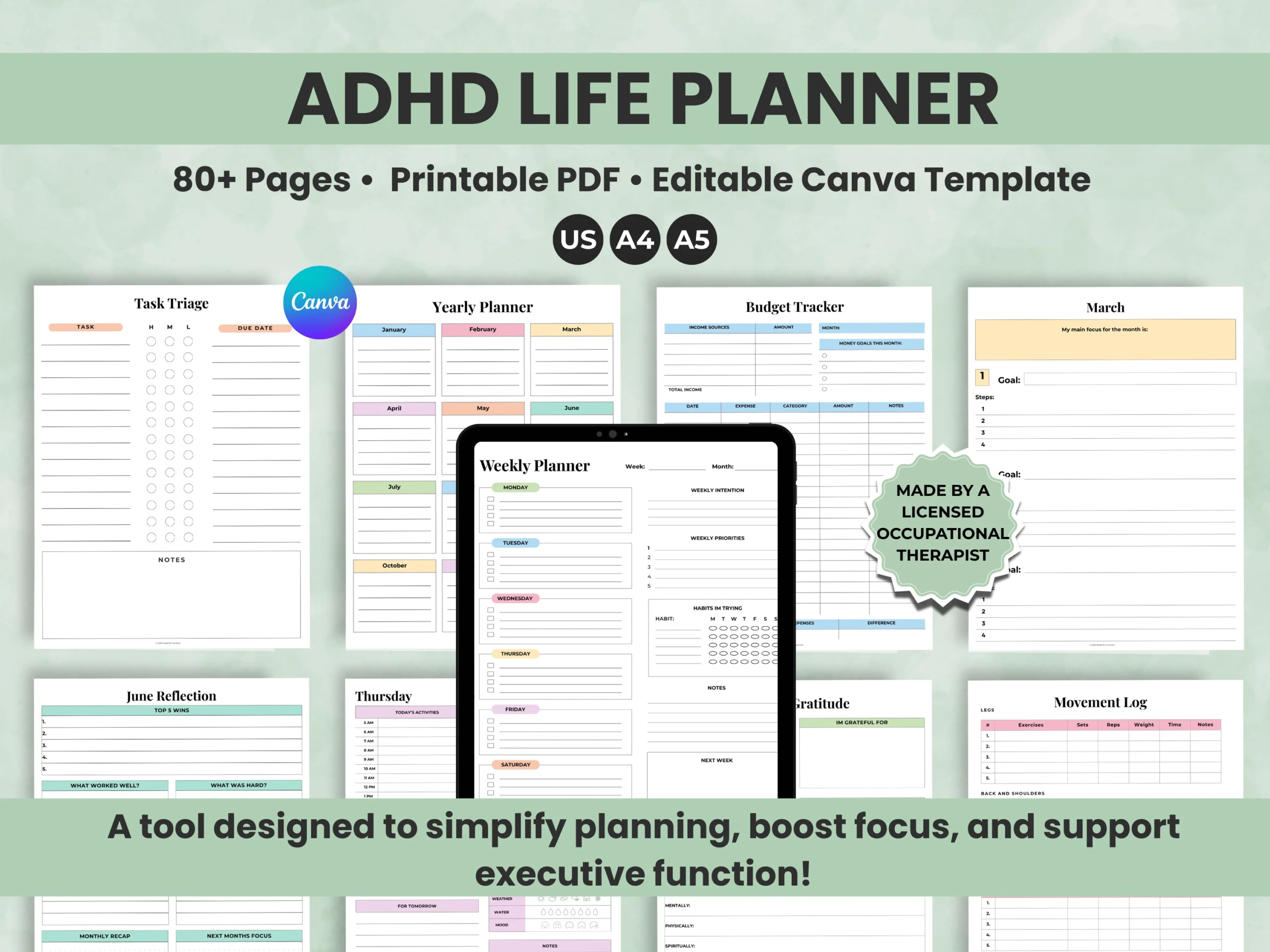 ADHD Life Planner Printable PDF & Canva Template — created by a licensed occupational therapist to make daily planning, routines, and organization ADHD-friendly.