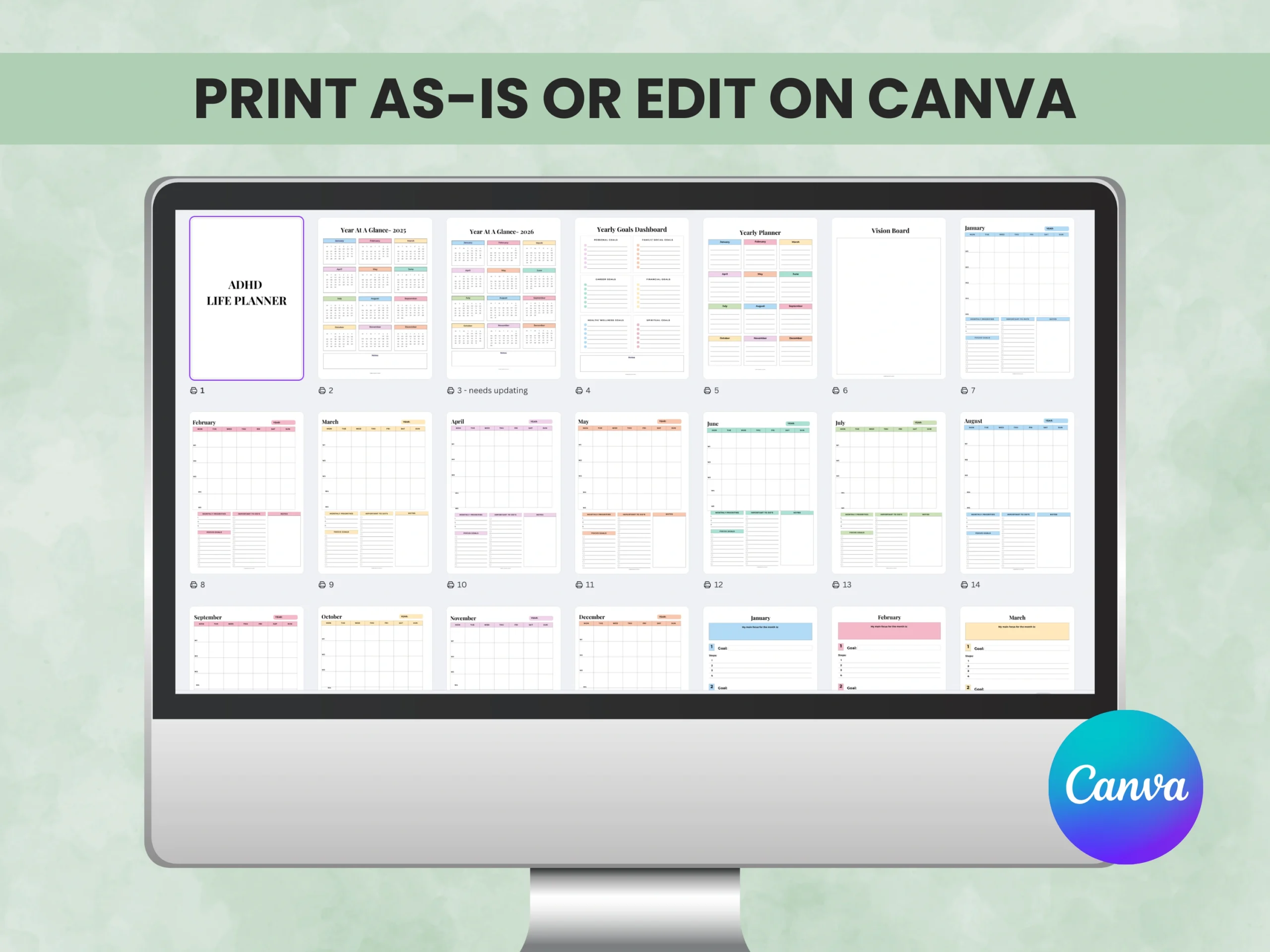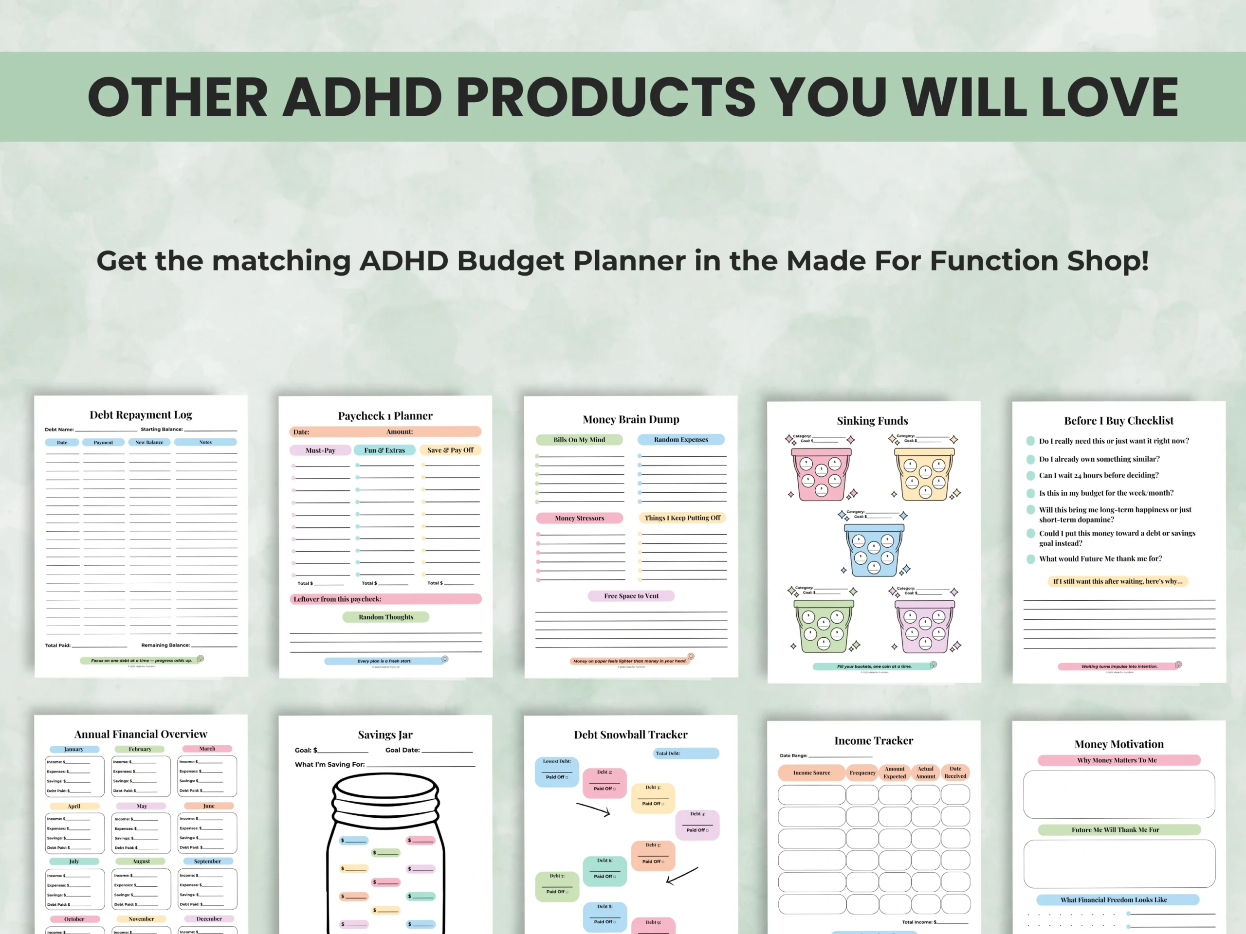 Pair this planner with the ADHD Budget Planner! Find it Here:  https://madeforfunction.etsy.com/listing/4383000121/editable-adhd-budget-templates-printable