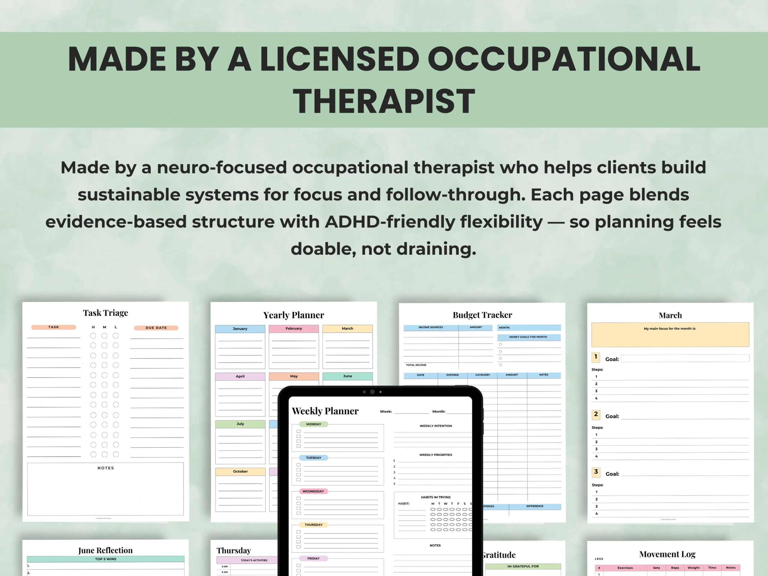 This comprehensive executive function planner helps you simplify your schedule, reduce overwhelm, and stay consistent with routines that actually work. Designed for ADHD and neurodivergent-friendly use, this planner turns chaos into clarity with flexible structure, visual tools, and therapist-backed strategies.