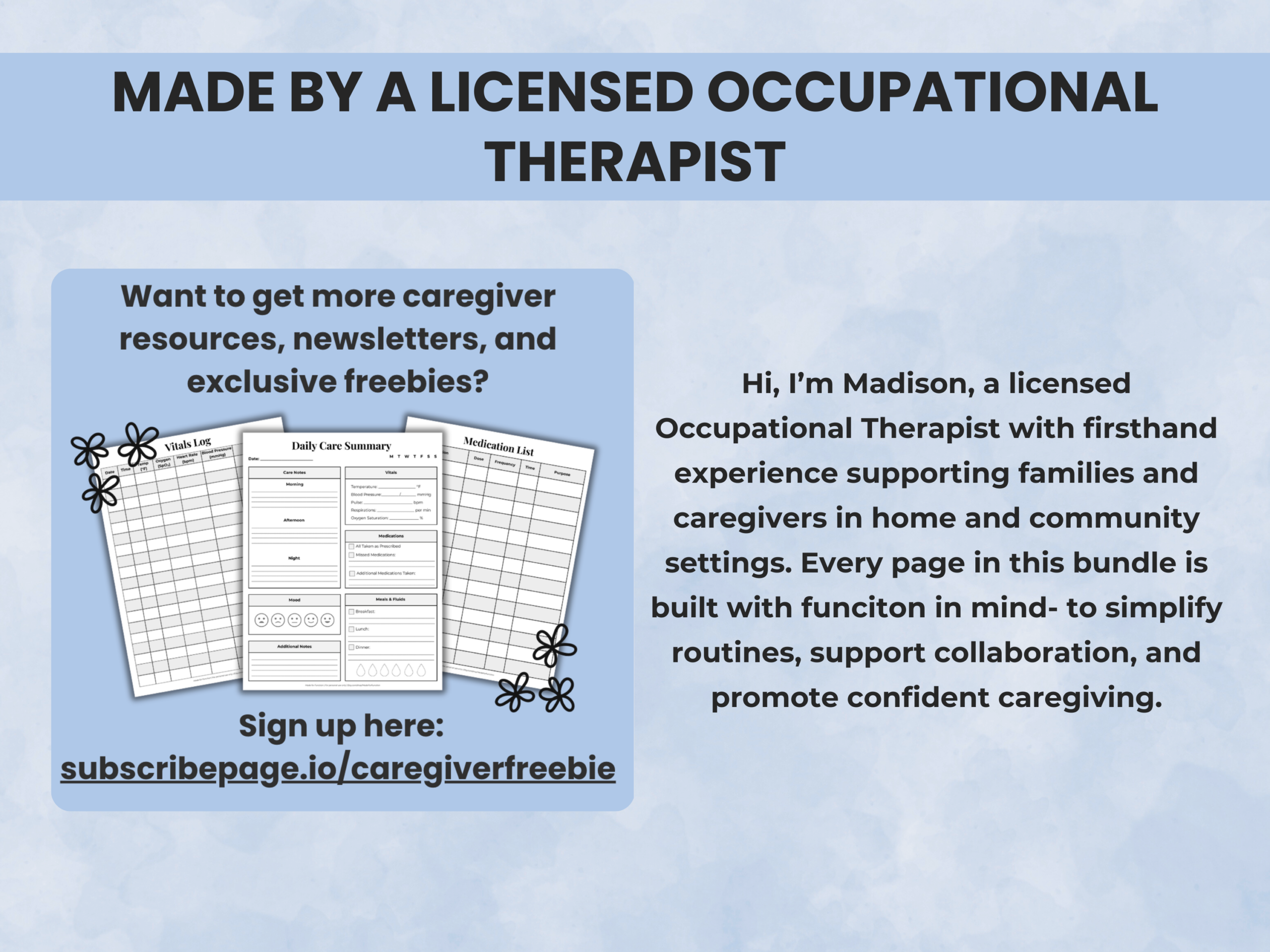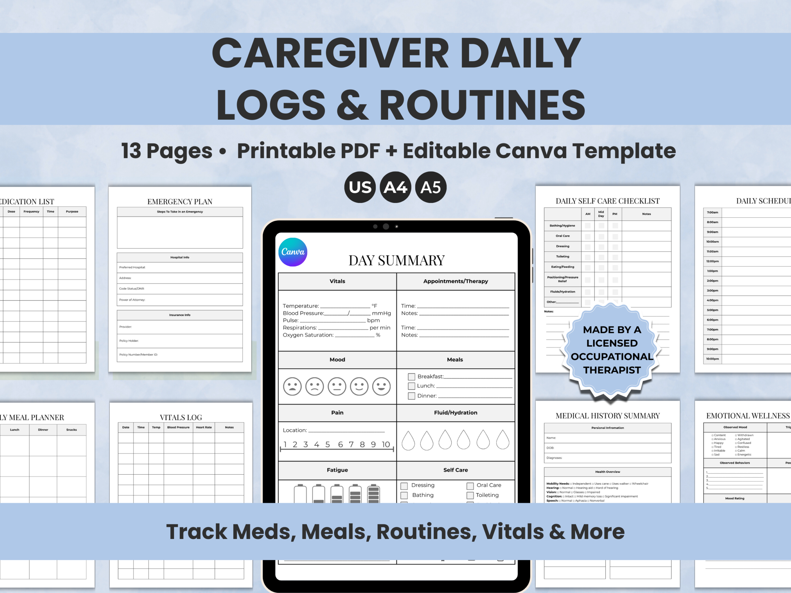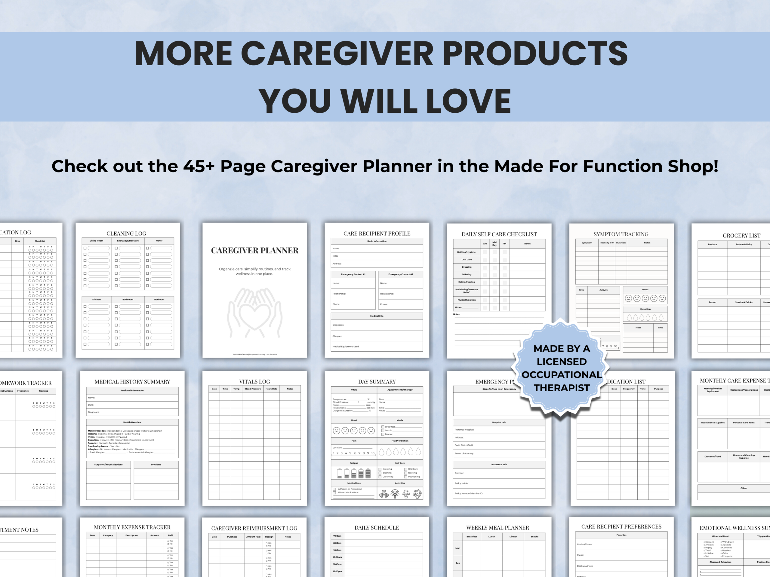 Caregiver Planner, designed by an occupational therapist to make elderly care and daily caregiving tasks easier.