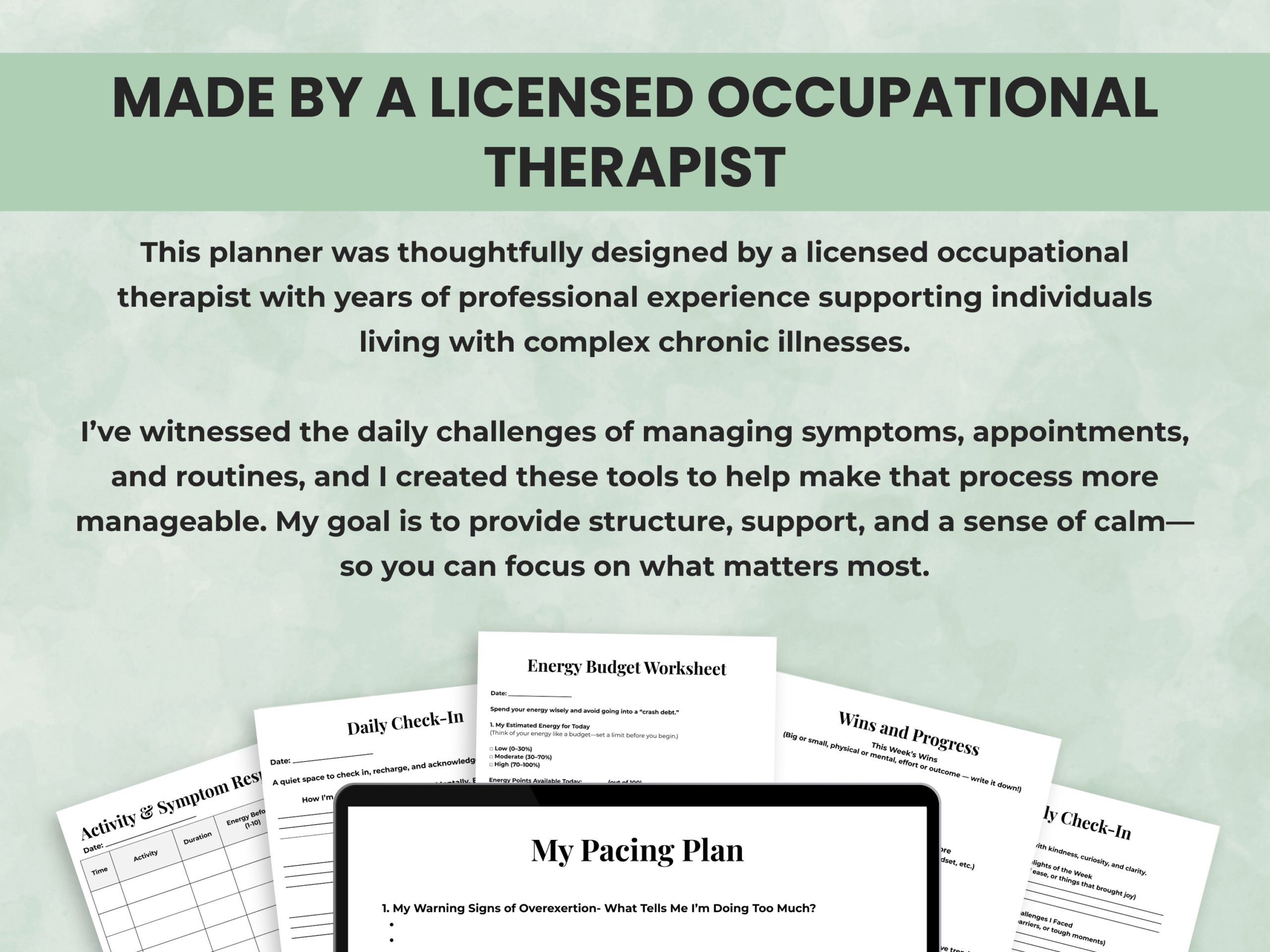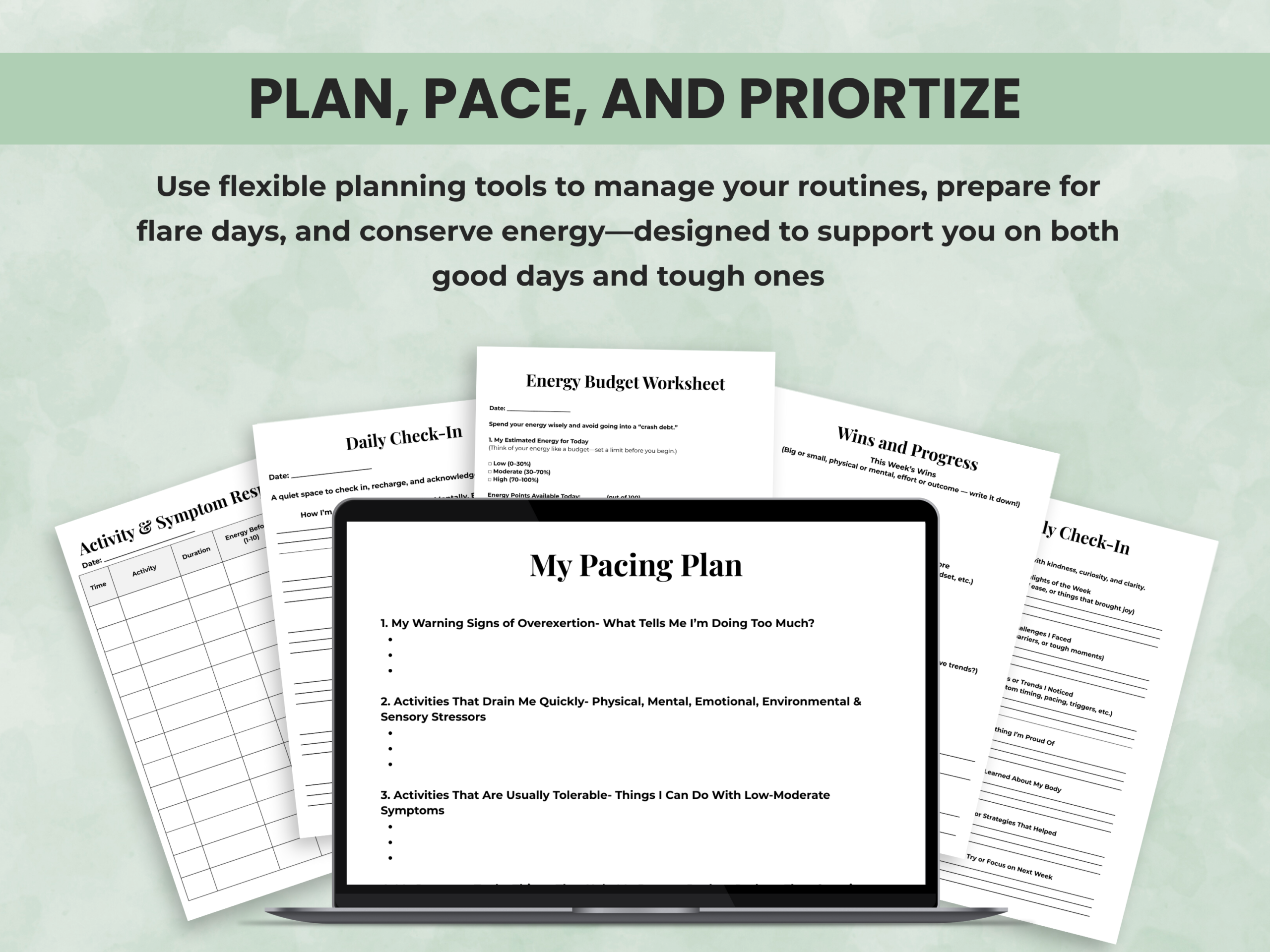 • Pacing plans, energy budgets & routine builders