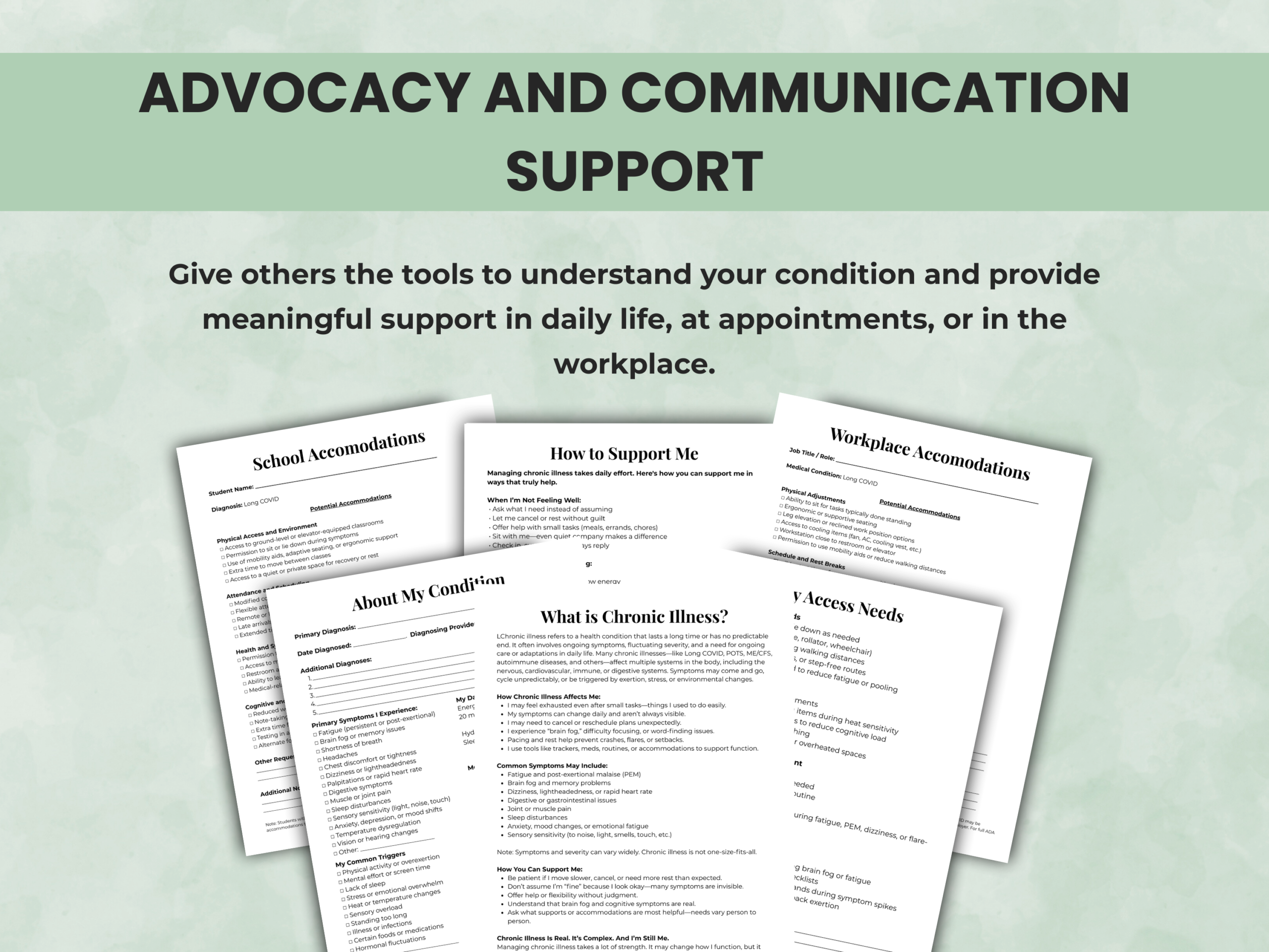 • Advocacy & access needs sheets