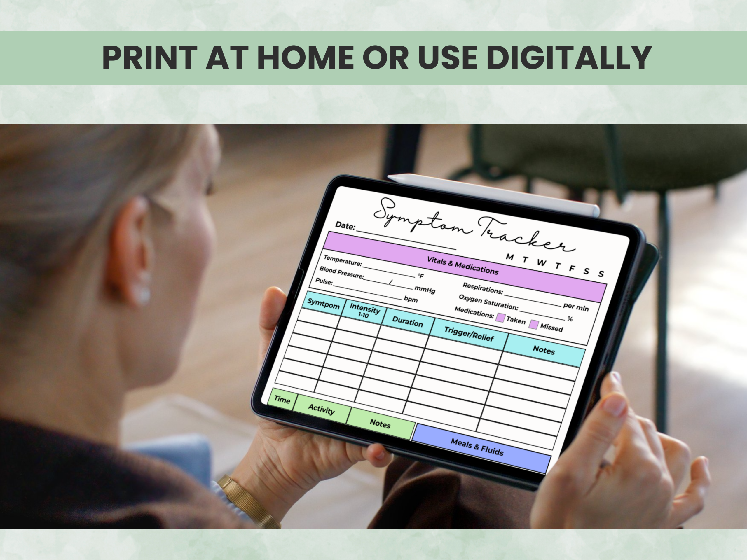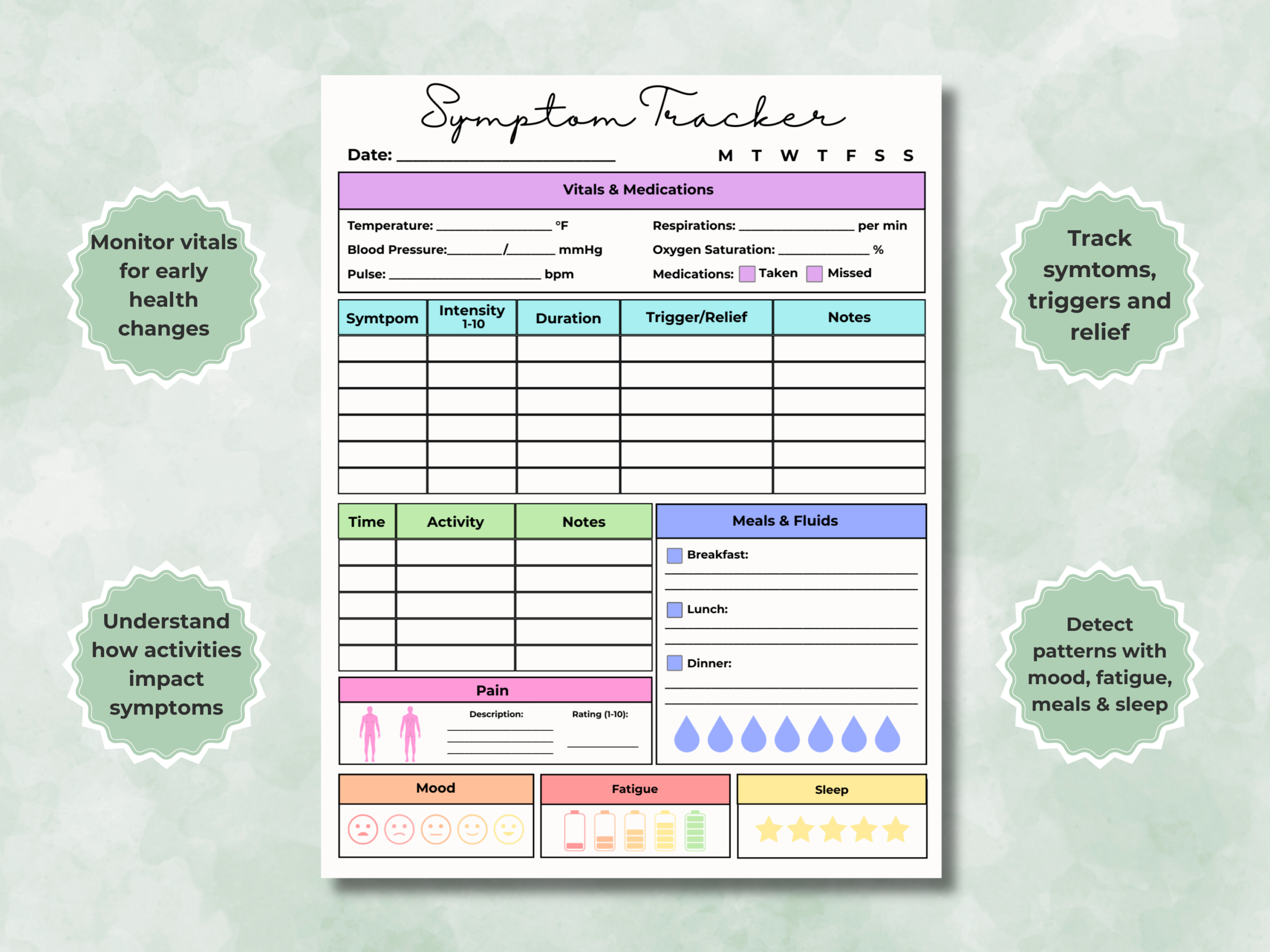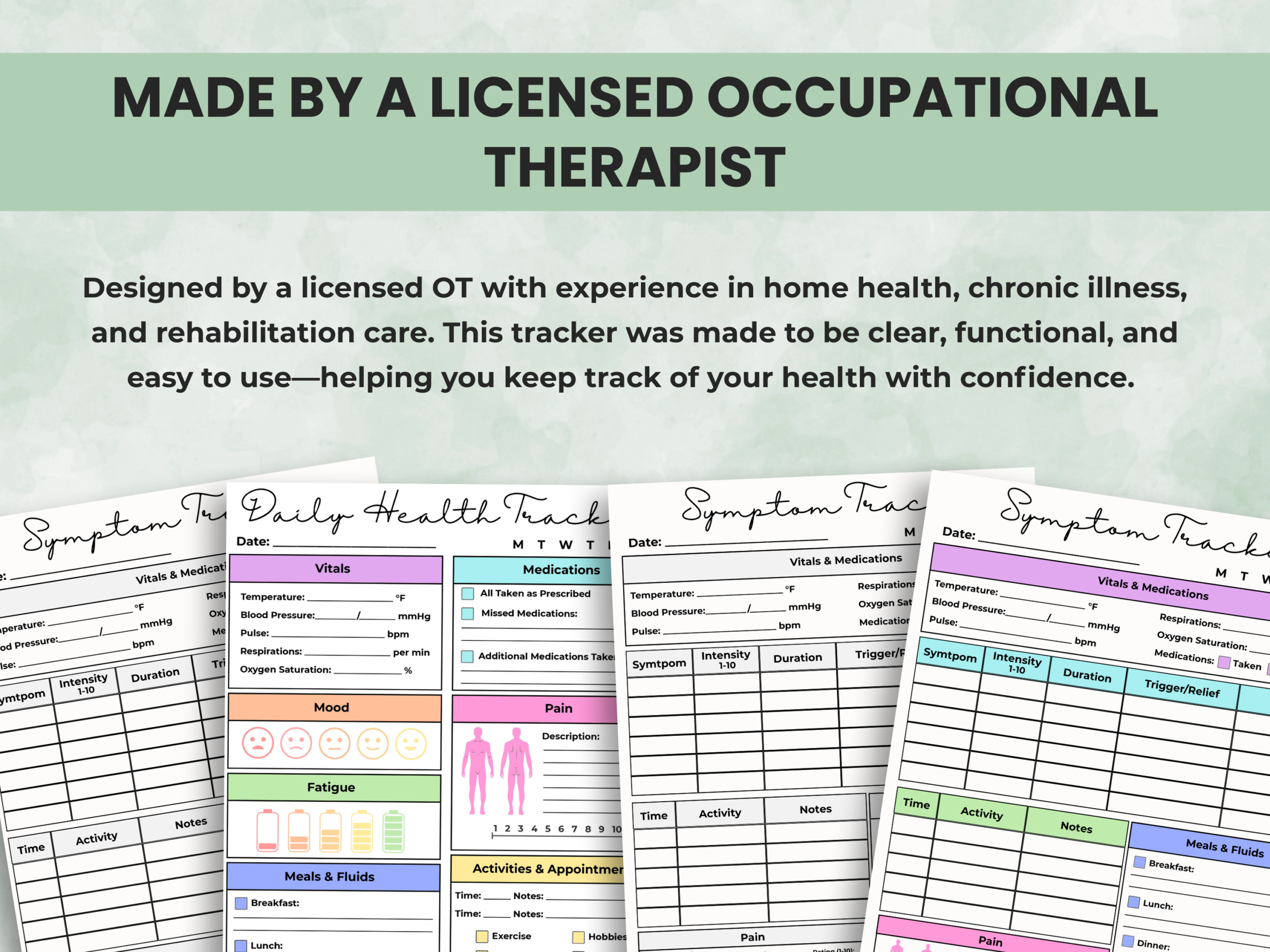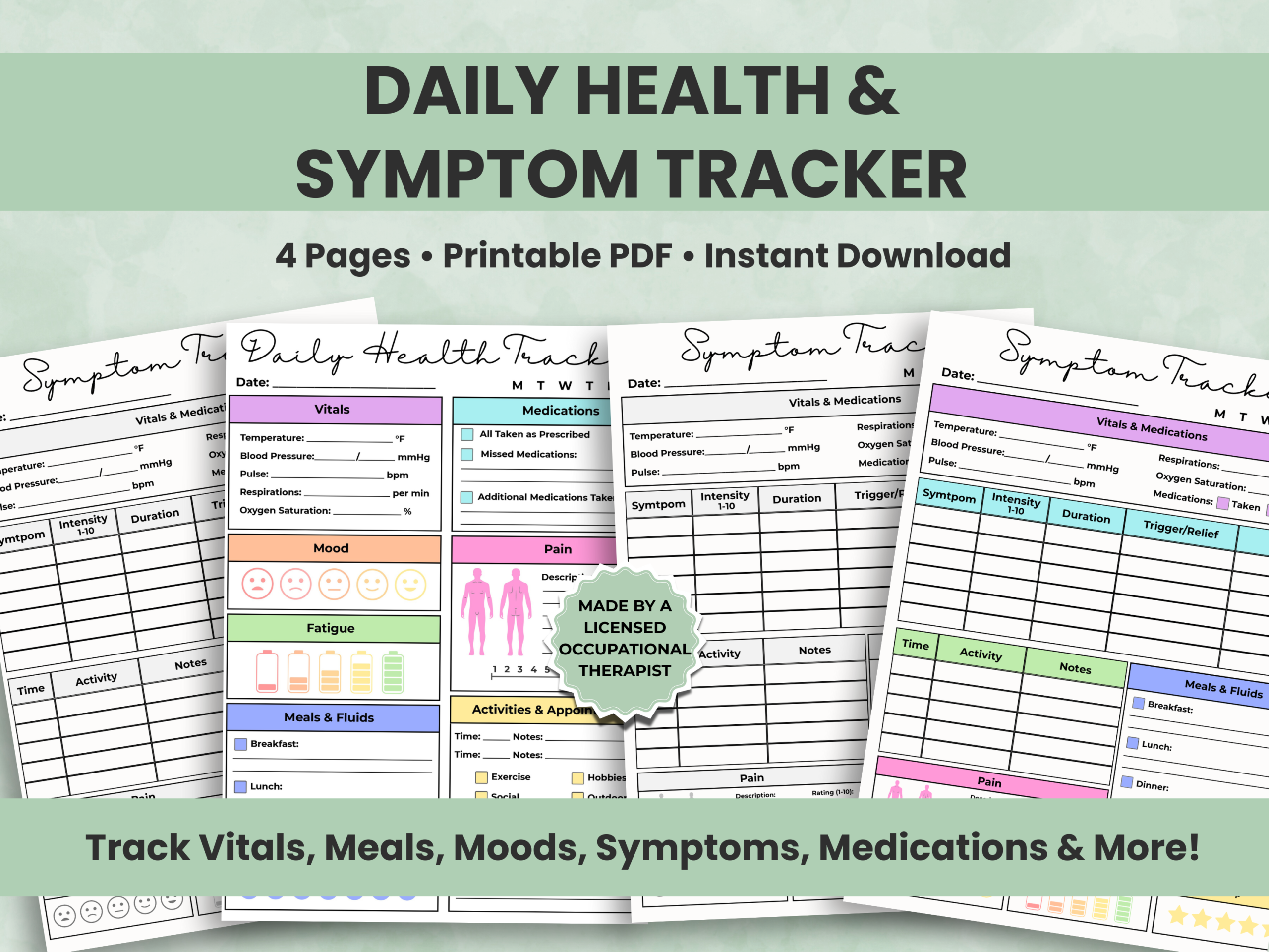 Daily Health Tracker & Symptom Log Printable PDF — created by a licensed occupational therapist to help you monitor daily wellness, symptoms, and self-care with ease.