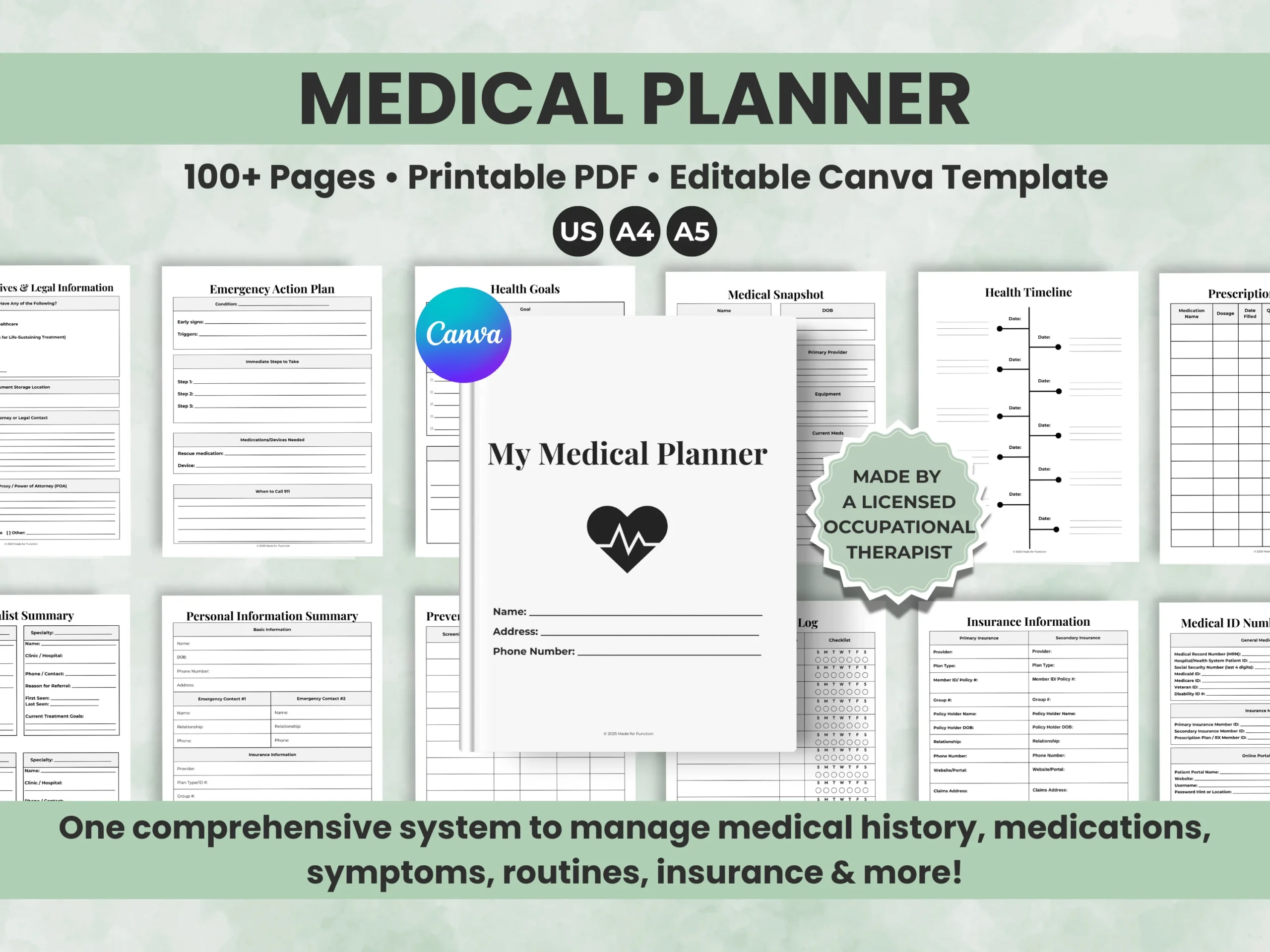 Medical Binder Printable, Chronic Illness Medical Planner, Medical Log, Symptom Tracker, Editable Health Organizer, Medical Record Binder — created by a licensed occupational therapist to make health tracking and record-keeping simple and stress-free.