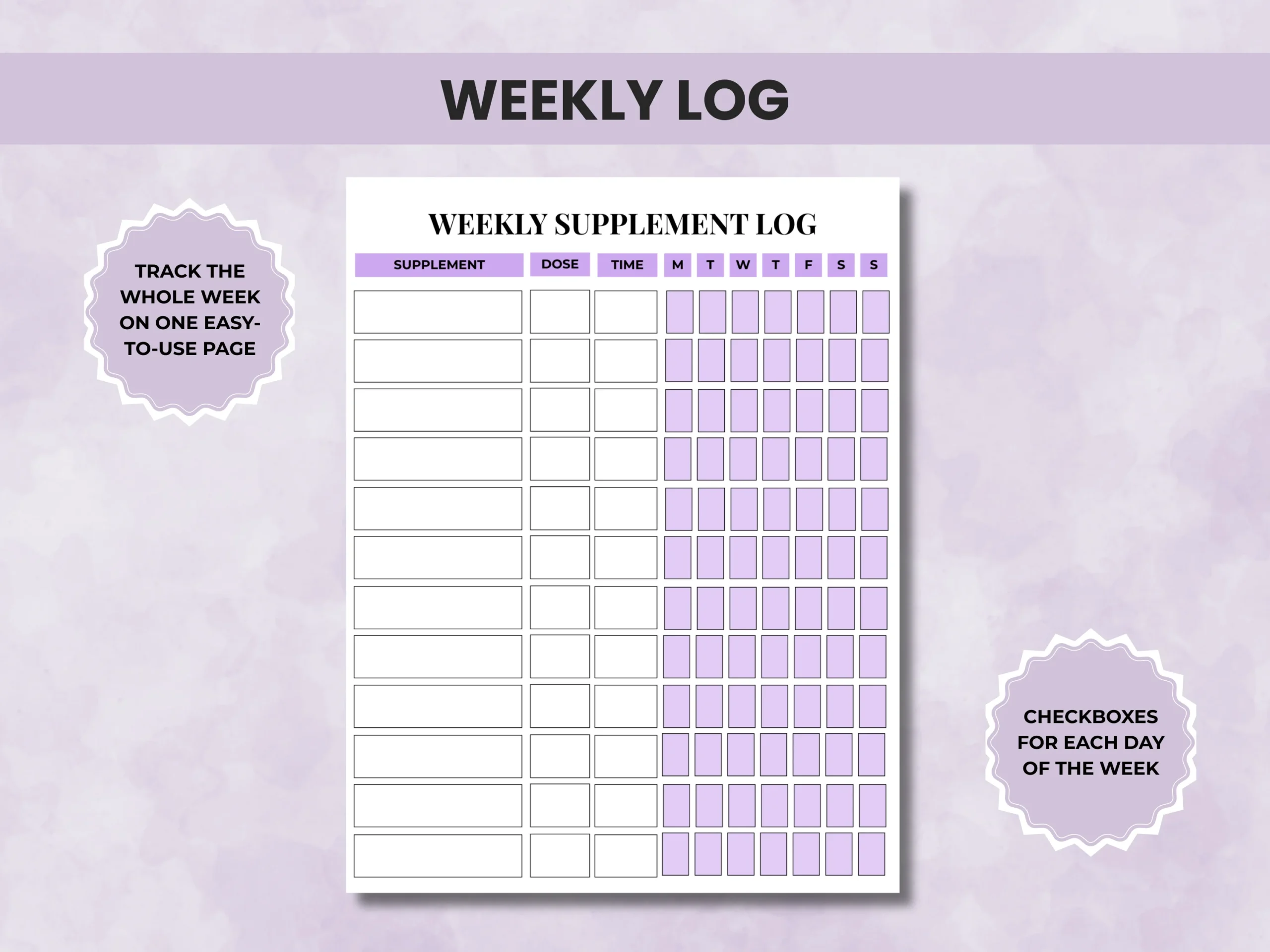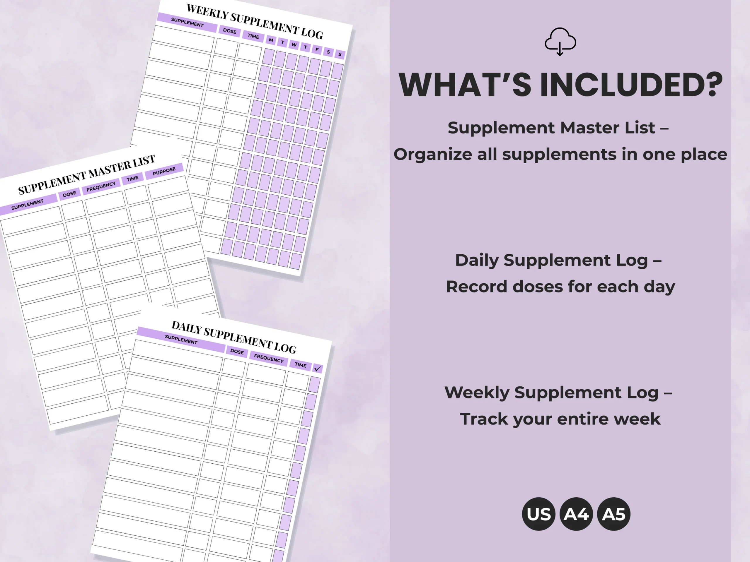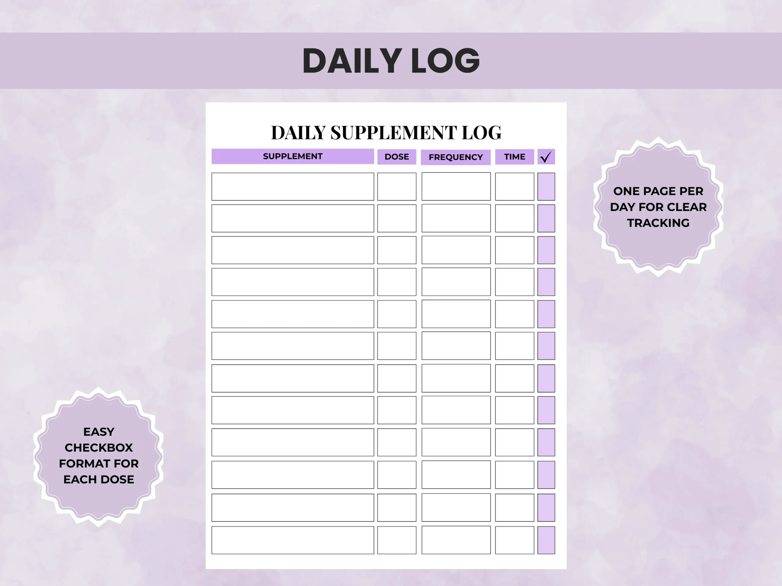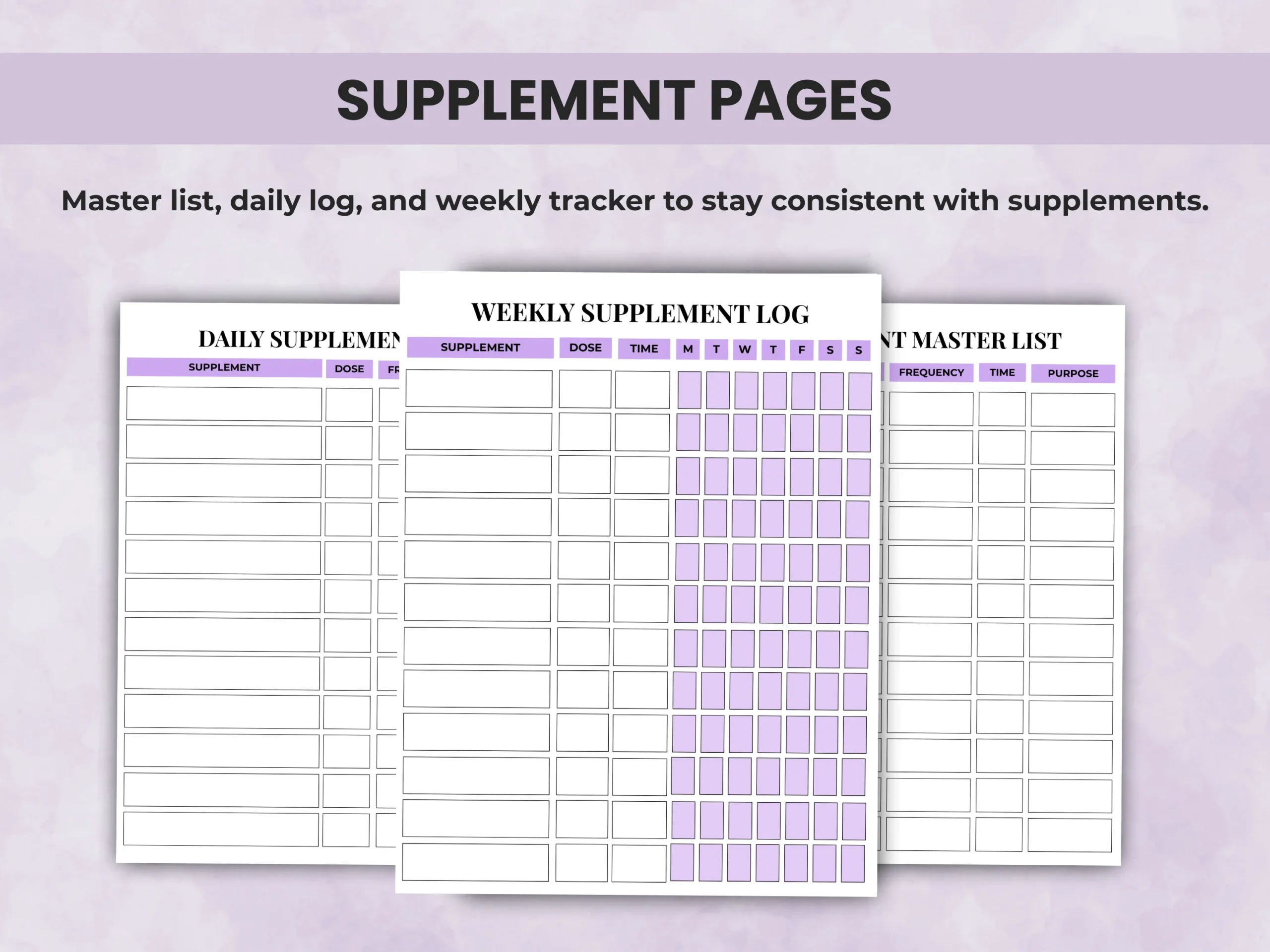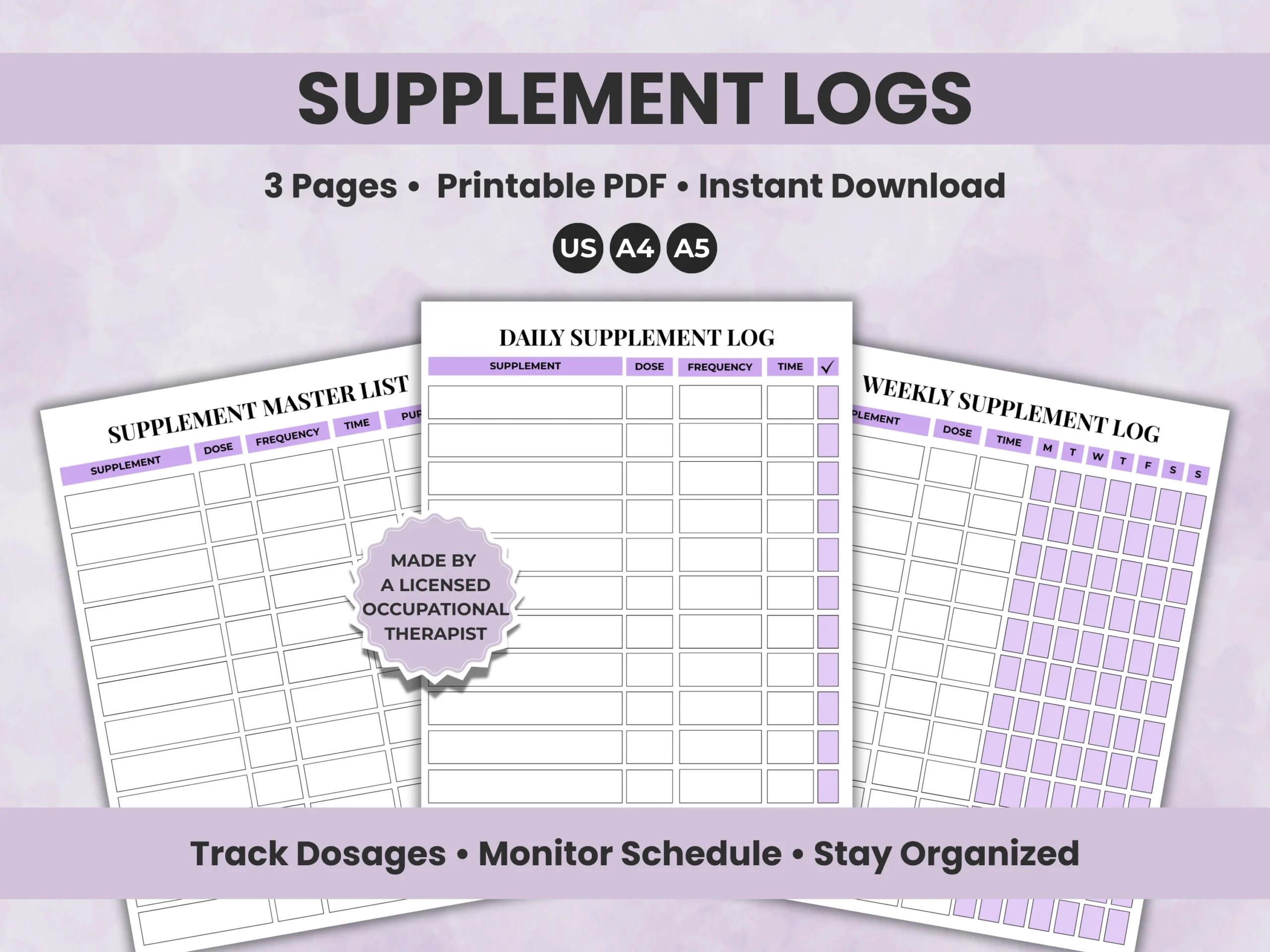 Supplement Log Printable PDF — designed by a licensed occupational therapist to make tracking vitamins, minerals, and wellness supplements simple, clear, and stress-free. This 3-page set helps you stay consistent, prevent missed doses, and keep accurate records for yourself or your healthcare providers.