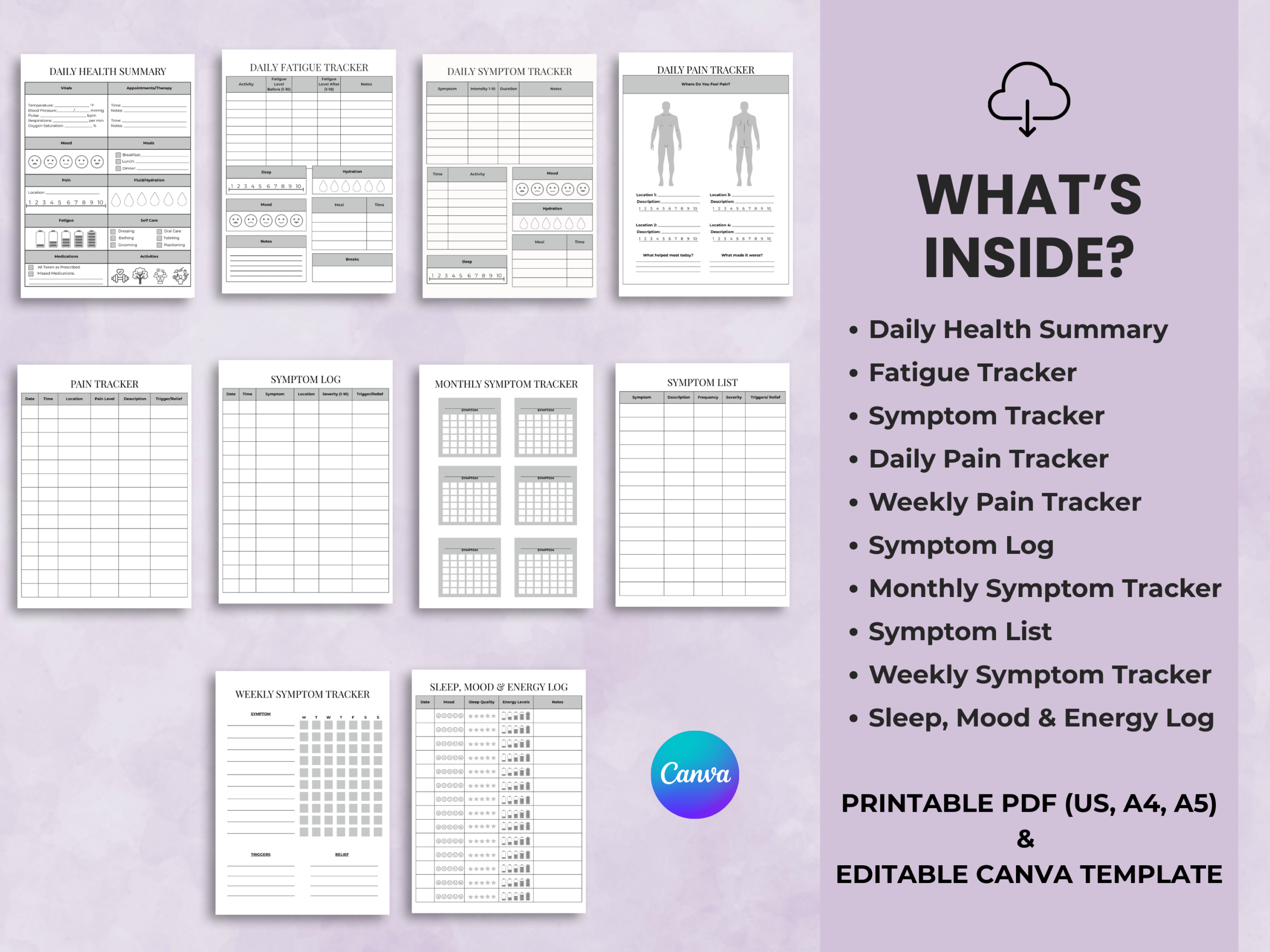 Chronic Illness Symptom Tracker Printable PDF & Editable Canva Template — created by a licensed occupational therapist to help you document symptoms, fatigue, and health patterns with clarity.